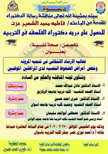 سيتم غداً الخميس الموافق 2020/2/27 م مناقشة الدكتوراه للدكتورة / فاطمة الشهير