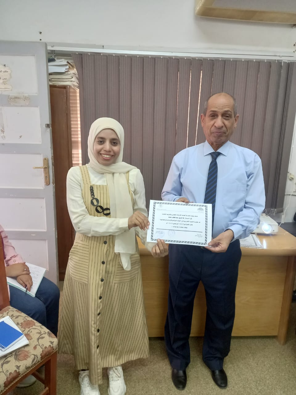 وفي نهاية الدورة تم توزيع شهادات المشاركة علي المتدربين .