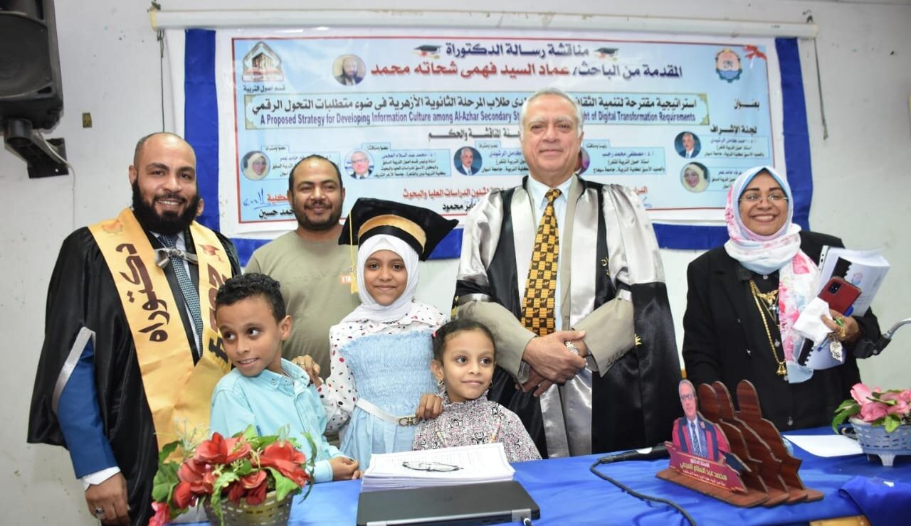 عقدت الجلسة العلمية لمناقشه رسالة الدكتوراه المقدمة من الباحث/ عماد السيد فهمي يوم الأربعاء الموافق 10/7/2024 والتي جاءت تحت عنوان ” استراتيجية مقترحة لتنمية الثقافة المعلوماتية لدي طلاب المرحلة الثانوية الأزهرية في ضوء متطلبات التحول الرقمي “