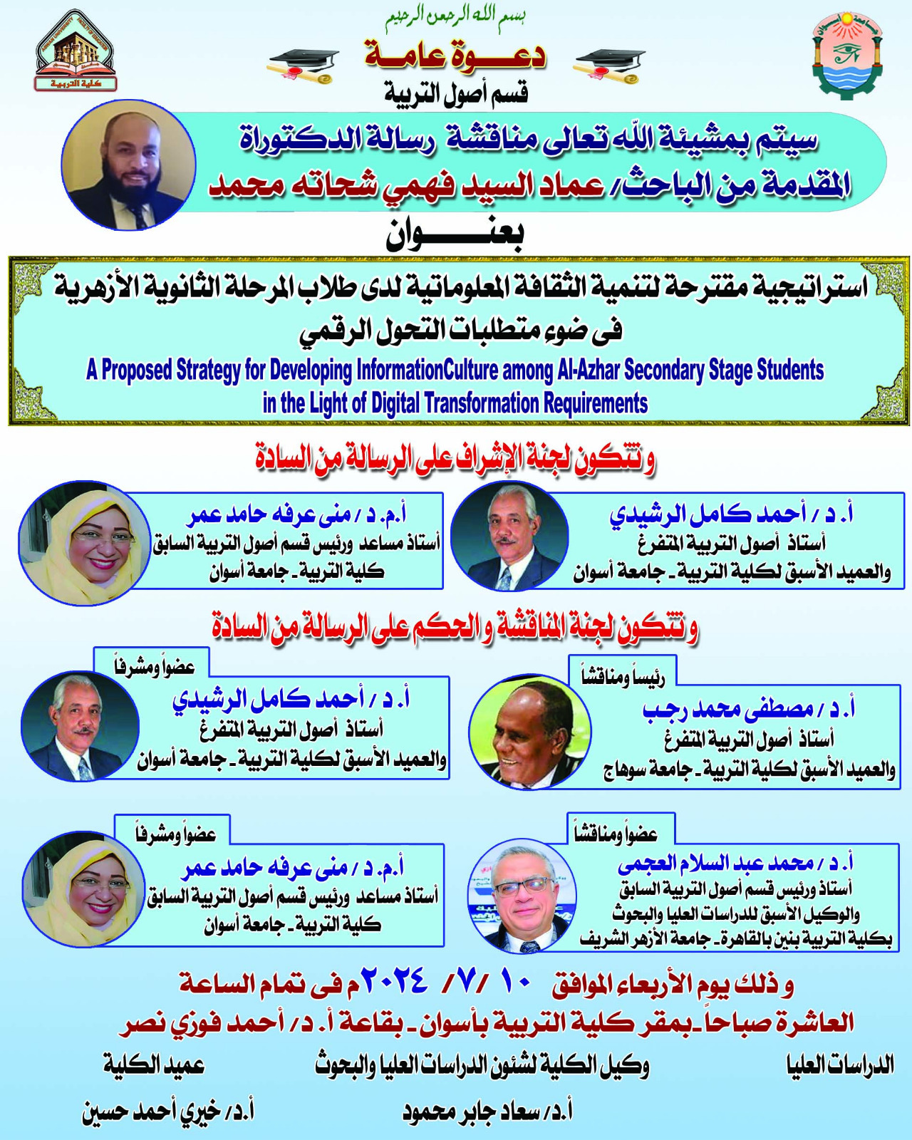 دعوةJuly 9, 2024اقرأ المزيدمناقشة رسالة الماجستير للباحثة/ دعاء مبارك محمد علي – بقسم الصحة النفسيةJuly 7, 2024اقرأ المزيداجتماع بوحدة مناهضة العنف ضد المرأةJuly 4, 2024اقرأ المزيددعوةJuly 3, 2024اقرأ المزيدمناقشة رسالة الدكتوراه للباحث/ مصطفى حسين غزالي – بقسم أصول التربيةJuly 1, 2024اقرأ المزيددعوةJune 29, 2024اقرأ المزيداعلان هام للطلاب المشاركين في مشروع محو الأميةJune 13, 2024اقرأ المزيدعميد الكلية يتابع المشروعات البحثية لطلاب دبلوم العام الواحدJune 12, 2024اقرأ المزيدانعقاد مجلس كلية التربية رقم ٣٣٨June 11, 2024اقرأ المزيد«‹323334353637383940›»