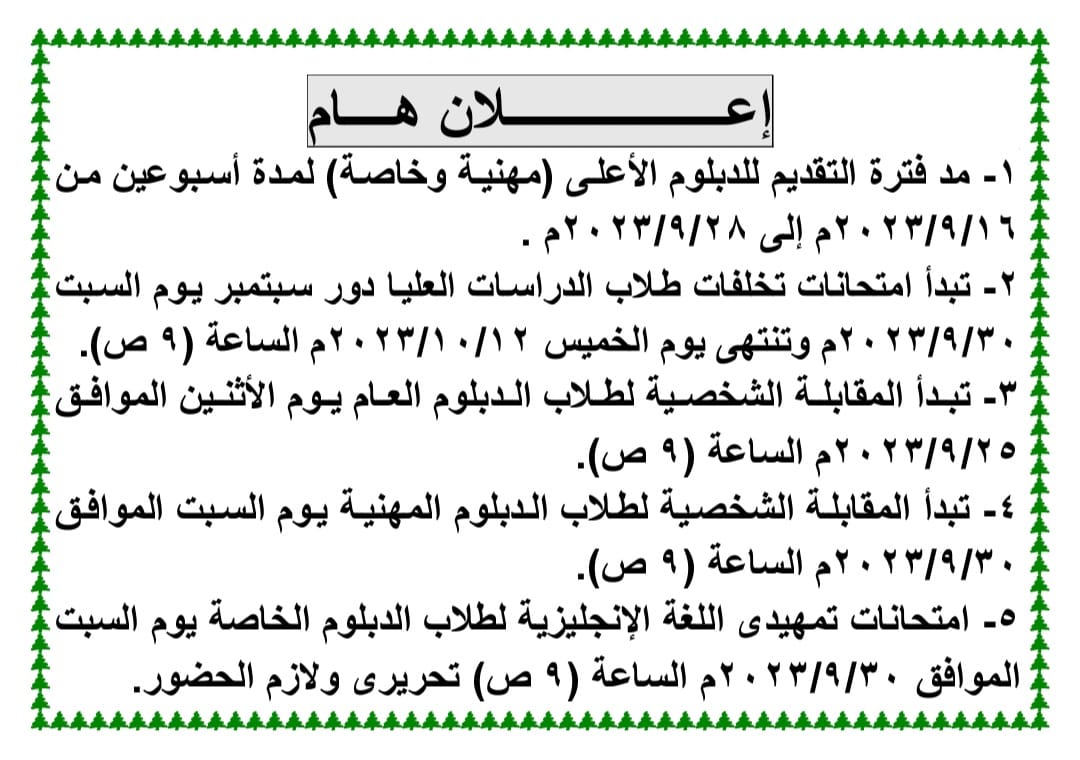 صدور اللائحة الداخلية لكلية التربية بجامعة أسوان لمرحلة الليسانس والبكالوريوس وفقا لنظام الساعات المُعتمدةSeptember 25, 2023اقرأ المزيدإعلان هام بطلاب الدراسات العلياSeptember 24, 2023اقرأ المزيدإعلان هام لطلاب الدراسات العلياSeptember 24, 2023اقرأ المزيدإعلان خاص بالدراسات العلياSeptember 24, 2023اقرأ المزيدإعلان هام جدا للطلابSeptember 24, 2023اقرأ المزيدإجتماع هام مع النواب بخصوص اللأئحة الجديدةSeptember 20, 2023اقرأ المزيدمجلس كلية التربية جامعة أسوان لشهر سبتمبر ٢٠٢٣ مSeptember 18, 2023اقرأ المزيداعلان هام جدا لطلبة الكلية (مبادرة الطالب المنتج)September 18, 2023اقرأ المزيدمناقشة رساله الماجستير للباحث / عبدالناصر ممدوح محمدSeptember 16, 2023اقرأ المزيد«‹404142434445464748›»