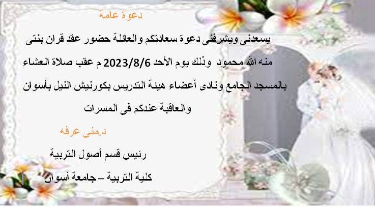 نتيجة امتحانات الفصل الدراسي الثاني للعام الجامعي 2023/2022August 4, 2023اقرأ المزيددعوه عامةAugust 3, 2023اقرأ المزيدمناقشة رساله الدكتوراه للباحثة /أميرة عبد الغنى أحمدJuly 24, 2023اقرأ المزيدمجلس كلية التربية جامعة أسوان لشهر يوليو 2023مJuly 13, 2023اقرأ المزيدزيارة لجنة اختبارات مسابقة القارئ الماسيJuly 12, 2023اقرأ المزيدمناقشة رساله الدكتوراه للباحثة / هدى رمضان عبدالرازقJuly 9, 2023اقرأ المزيدتهنئة بمناسبة عيد الأضحى المباركJune 26, 2023اقرأ المزيدكشف انجاز طلبة جامعة أسوان عن دورة أبريل 2023June 21, 2023اقرأ المزيدمجلس كلية التربية جامعة أسوان لشهر يونيو 2023June 15, 2023اقرأ المزيد«‹444546474849505152›»