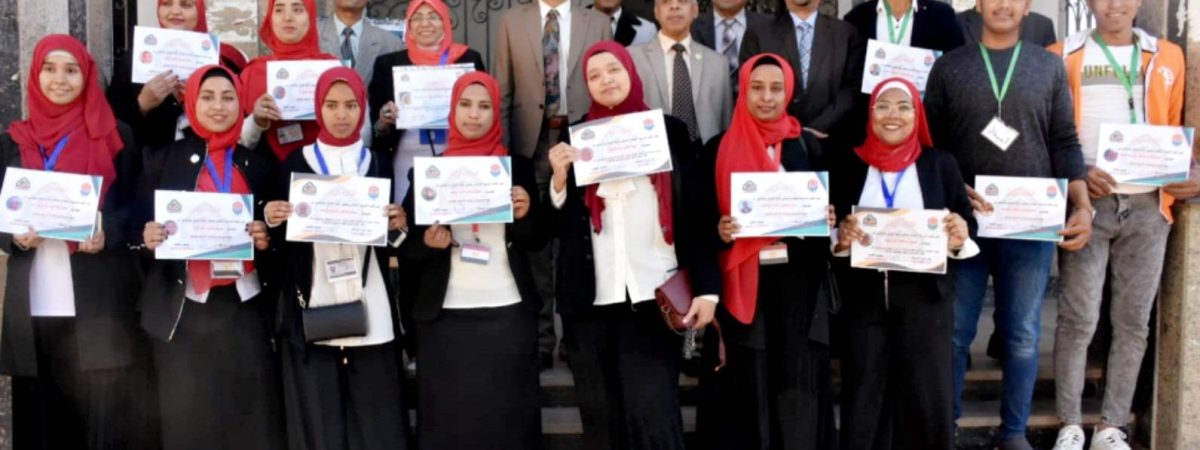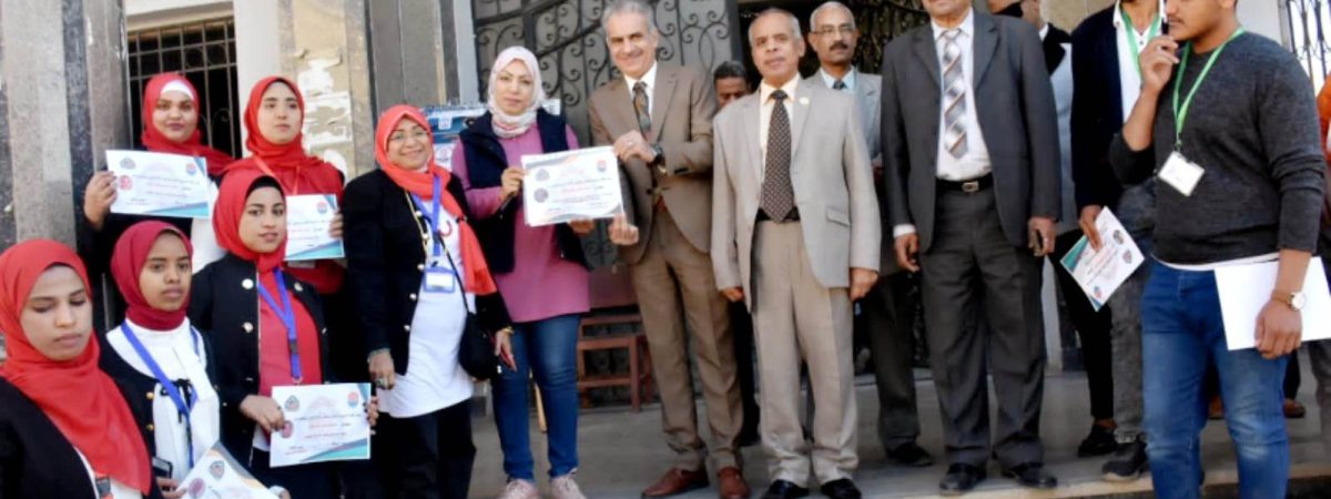 ومعاونيهم والطلاب والطالبات بكلية التربية بجامعة أسوان.