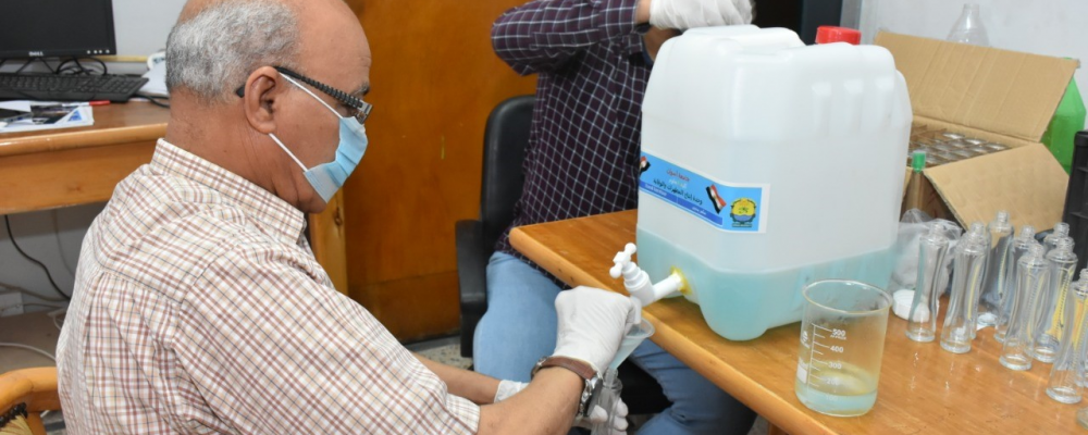 فقد قام معالى السيد الأستاذ الدكتور / رئيس الجامعة بتفقد وحدة إنتاج المطهرات والوقاية والمنظفات بكلية العلوم – جامعة أسوان و التى تقوم بإنتاج المطهرات الكحولية و المنظفات سواء السائلة أو جيل مطهر .