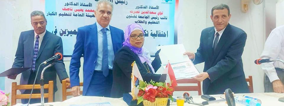 والأستاذ الدكتور/ محمد يحيى ناصف_ رئيس الجهاز التنفيذي لهيئة تعليم الكبار حفل تكريم طلاب الجامعة المتميزين في تحقيق