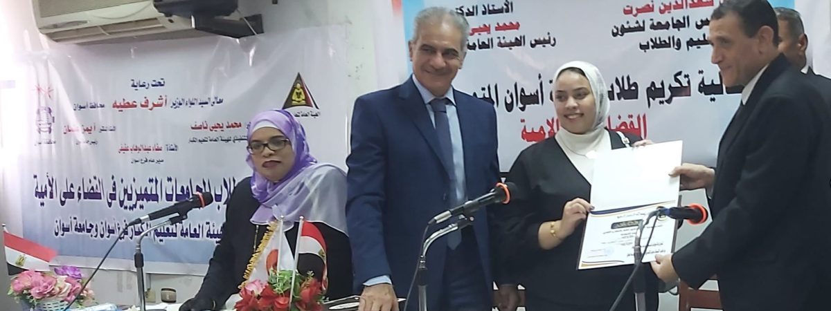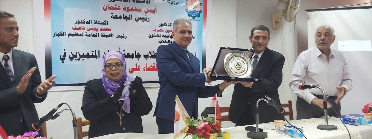 إنجازات متميزة بالمشروع القومي لمحو الامية وعدد الطلاب المكرمين ٣٣ طالبا من كلية التربية و ٤ طلاب من كلية دار العلوم.