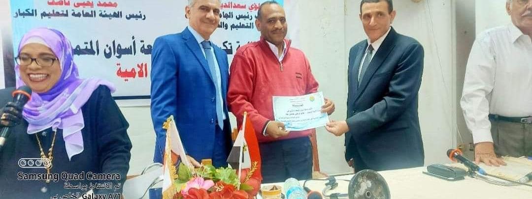 وحضر الحفل العديد من قيادات العمل الاجتماعي بمحافظة اسوان وأعضاء هيئة تعليم الكبار بأسوان والقاهرة وأعضاء