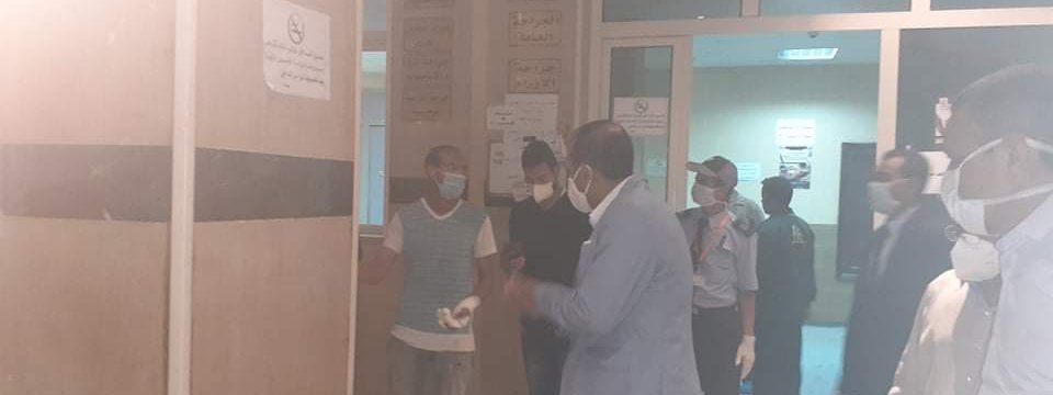 و من جانبه شدد ” غلاب ” رئيس الجامعة علي أهمية تطبيق الإجراءات الإحترازية علي أبواب المستشفى الجامعي وأعمال التعقيم لتاكد من سلامة المترددين علي المستشفى مع توقيع الكشف على المرضي قبل دخولهم وذويهم حتي لا يتكرر إصابة الأطقم الطبية أو المرضي بفيروس كورونا ويأتي ذلك في إطار إعادة الانضباط للعمل الإداري داخل المستشفى الجامعي بعد إعادةإفتتاحه