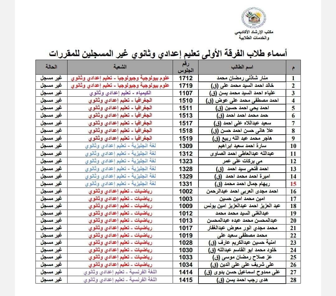 تقرر تحديد آخر موعد لتسجيل طلاب الفرقة الأولى للمقررات الدراسية يوم السبت الموافق 30 مارس 2024 من الساعة 10 حتى الساعة 12 .. مع العلم أنه